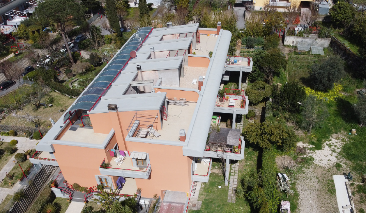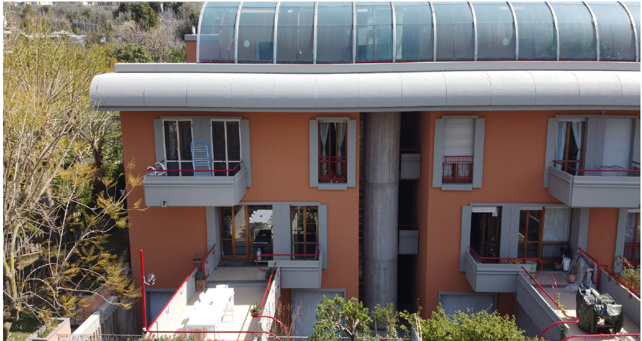 Il fabbricato aveva necessità di ripristinare il decoro delle facciate, in particolare degli elementi in cemento armato a faccia-vista che decorano tutti i prospetti e di cui sono costituiti i terrazzi. Sono stati installati impianti di pannelli fotovoltaici e solari e inserito cappotto termoisolante corrispondente ad almeno il 25% delle superfici opache, oltre che aver sostituito infissi e impianti di climatizzazione.