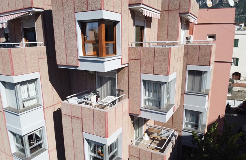 Il fabbricato è oggetto di manutenzione delle facciata, in particolare dei pannelli in c.a. che la compongono. Si procede anche alla sostituzione degli infissi.